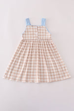 This charming beige gingham dress features adorable puppy embroidery, adding a playful touch to a classic pattern. Perfect for sunny days and casual outings, it combines comfort with cute style for your little one.
