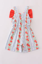 Be the apple of everyone's eye in this printed jumpsuit with a charming bow accent. Perfect for a playful and carefree look, you'll be the talk of the town with this unique and fun outfit. (No need to be a fruit lover to rock this outfit!)
