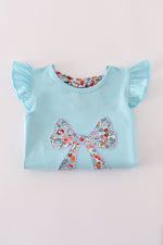 Blue floral bow applique active skorts set