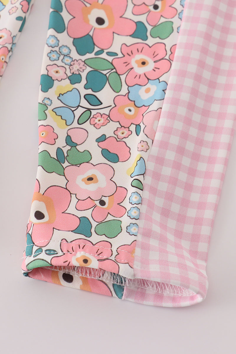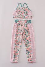 Pink floral print 2pc active tank legging set
