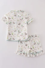 Get quacking in these adorable sage duck girl pajamas set. Perfect for a cozy night of cuddles and sleepovers. No need to wing it, these pajamas are comfortable and cute. Don't duck out on the fun, add these to your sleepwear collection now!