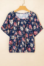 This Blue Floral Scoop Casual Blouse combines a stylish floral print with a flattering scoop neck, creating a feminine and versatile look. Its short sleeves make it perfect for warm weather, while the casual yet chic design suits a variety of occasions. Effortlessly elevate your wardrobe with this must-have blouse.