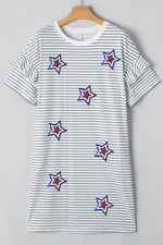 Celebrate in style with this White Stripe Sequin Dress. The ruffled short sleeves add a playful touch, while the mini length keeps it flirty and fun. Perfect for festive occasions, this dress combines eye-catching sparkle with comfortable wear, making it your go-to choice for standing out at any event.
