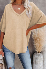 Upgrade your summer wardrobe with TYPT Exposed Seam Top FB. This fashion texture knitted top for women boasts stitched details, a v neckline, dropped short sleeves, and a round hem. Choose from a variety of size and color options for the ultimate versatile and stylish addition to your closet.